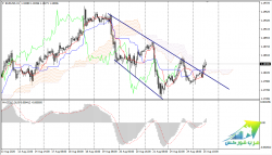 ارتفع اليورو دولار قبل ان يعود للحد السفلي للقناة ارتفع و لامس القمة السابقة و الان يتحرك بصورة عرضية كسر الدعم الحالي سيعود به لملامسة الحد السفلي للقناة التي اشرنا اليها في التحليل السابق